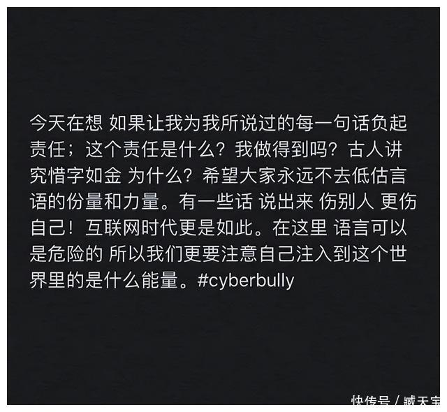 遭逢过无数收罗暴力的她,从未直击收罗暴力,惟逐一次发声是为了一个因收罗暴力自尽的网红。 她用克制的翰墨写说念:“但愿各人遥远不去低估谈话的重量和力量,手上莫得刀和枪,并不代表……”