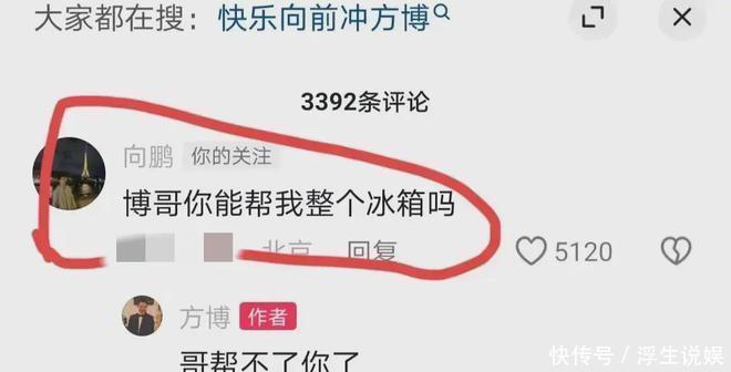 昨晚向鹏也来方博直播间了,送了两个合手合手的礼物,然后网友看到向鹏来了,就跟方博说向鹏来要雪柜了,方博跟周雨说,其时向鹏说给他加油,让他拿雪柜归来。效果方博冲了两次齐落水了,还恢复向鹏:“哥帮不了你了”。